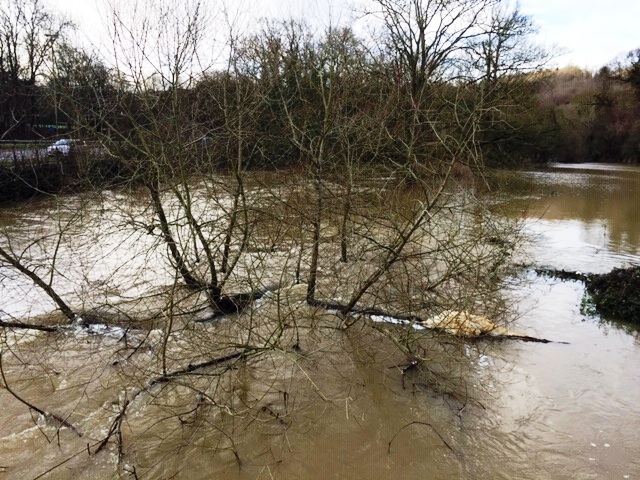 But instead, as we free wheeled down the hill to join the cycle path to Dorking, we found that the Mole valley was flooded and the cycle path had disappeared, not under snow but water. Lots of it!