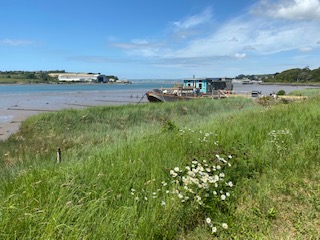 We managed to talk the manager into letting us leave our cars for the 2 extra days then set off on an immediate long downhill to Woolacombe, with me panicking all the way about the impending uphill out of Woolacombe to Barnstaple. Yes it was hard going but once we joined the beautiful Tarka Trail at Barnstaple we had 30 mainly flat miles with stunning views of the estuary and fabulous sunshine all the way.