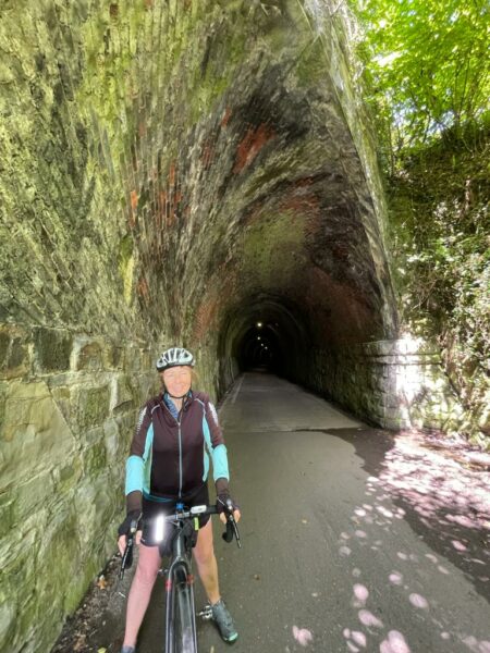 and rode into Okehampton in search of fruit and yoghurt. Except nothing’s open at 8am in Okehampton! We had to settle for the cafe in Waitrose which, it turned out, had just reopened after Covid restrictions and we were their first customers. Excellent service from 3 ladies who clearly loved their job. Happy days and yoghurt galore. Then the hills and even more hills followed by the unanimous decision to skip the rest of my planned (hilly) return route in favour of picking up the Tarka Trail again, which I must agree is beautiful. Lunch was another visit to Puffing Billy