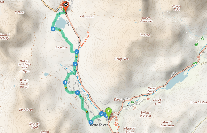 So having described the ride from Cricceith to Beddgelert and back to Deiniolen, here is the full route.