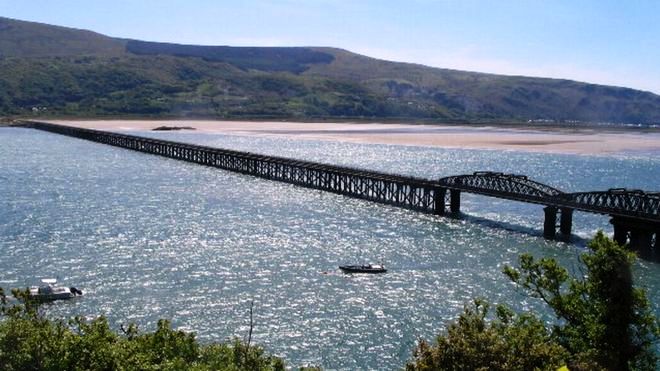 The small harbour is due to the very long Victorian railway bridge shown below., This bridge restricts bigger boats from going up stream. However it is great for cyclists because running side by side with the railway line is the pedestrian and bike route back to Dolgellau!