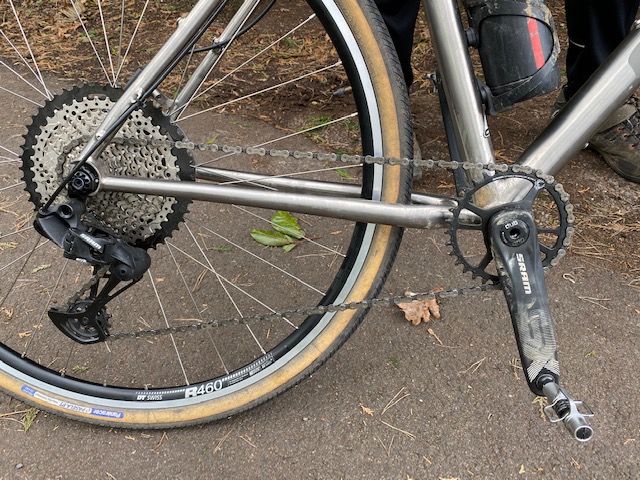 Bob’s new bike is a Planet X Titanium Adventure bike. A new concept for Gravel Bikes from the US of A. As you can see from the latest Sram, 12 speed, single chain ring set up, with super low gears, it was intended for adventures something like this! But of course in the Americas, the west coast chain of mountain trails from Rockies to Andes.