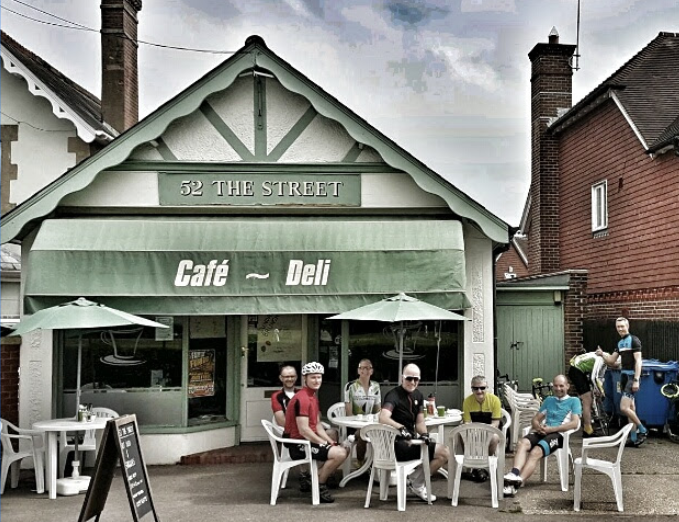 Here go right towards Rusper, then a sharp left towards Newdigate, then a right into Partridge Lane and head into Charlwood to our second tea stop at 52 The Street, ever popular with cyclists!