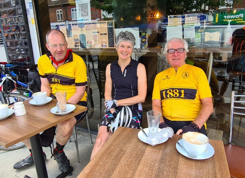 We ended up in a coffee shop in West Byfleet. The sustenance revived us all and at the first opportunity we were back, on track, off road.
