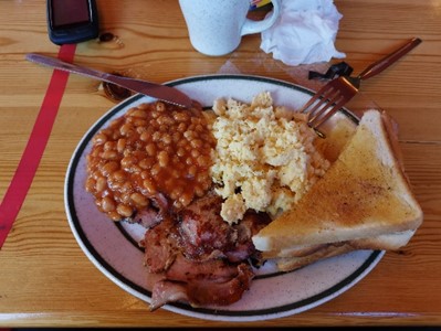 Cooked breakfast and not so great coffee and we 3 headed off, sometime after 10am.There is not much to report on the ride back.
