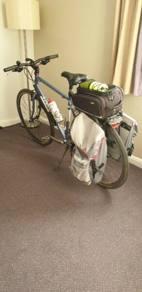 On the outskirts of Reading light rain started to fall gradually getting more persistent as we went. Jackets on and we arrived in roughly the centre of the city. The area being Caversham. John left us and crossed the river towards his bed for the night. Alison and I travelled further along to Alison’s intended hotel, only to discover it was fully booked. The more upmarket hotel next door was only too happy to take Alison’s money. Arrived at my sisters at 8pm, showered, gear washed, chicken and chips followed by delicious homemade rhubarb sponge and chilled ale, quick catch up and bed.