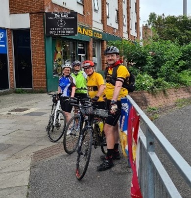 Todays group consisted of Vince and Monica whom had stayed over, joined by Alison and Fran who travelled out from London arriving in Reading at 08.30am. Shak, although having stayed over, decided to make his own way back home. He managed to post some great pics on chat of his trip. They had all had breakfast together at the hotel before I arrived. Note – they where allowed to have their bikes in the rooms with them and right next door was a branch of Evans Cycles.