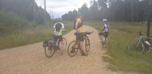 We had by this time travelled close by military training areas and ranges, dug mud out of close-fitting mudguards, dodged healthy looking stinging nettles adjacent narrow paths and discussed at length, what animal had ‘dumped’ right in the middle of a path etc etc. It had been a fun but tiring few hours.