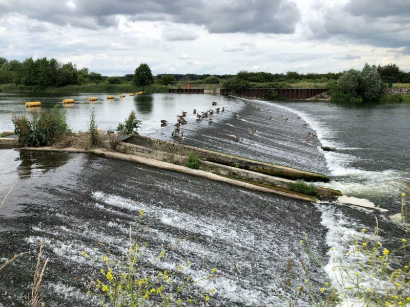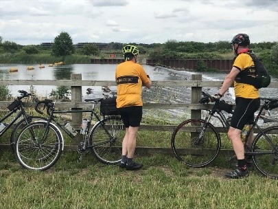 I helped him push his bike up steps beside the canal. His bike weighed a ton, well the kitchen sink he must have had in his panniers did! Our 3rd detour was just before crossing the M4 and Jubilee River and heading Westward along the river footpath.