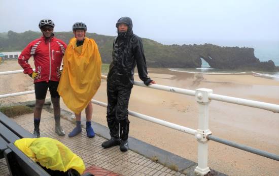 Except for this one morning of torrential rain it had also been for us, a great bike tour along Spain’s Costa Verde. The us, being Tom Vaz (taking above photo), his son Christopher, Ricky and myself. It was on the 4 or 5 days before this downpour that our wheel tracks had crossed those of the Benton- Simcock family on several occasions, as explained here