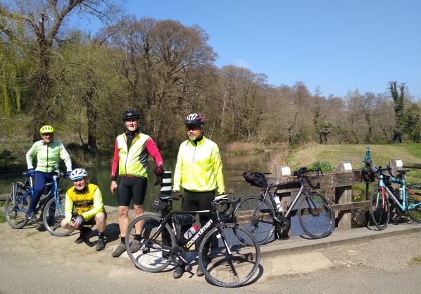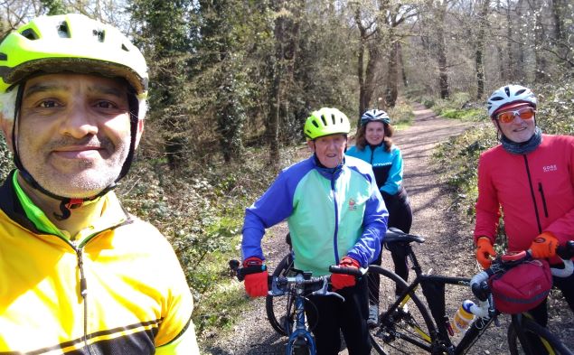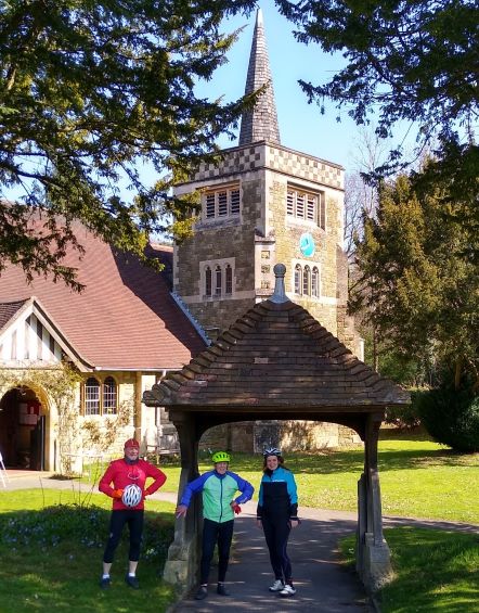 The reason for stopping was – a/ because it is such a beautiful old church, b/ The woodlands around Limpsfield Chart would normally be a mass of bluebells – but not yet this year! Also for those not yet in the know, in the summer the church normally does Sunday afternoon teas – a welcome stop for thirsty cyclists! But with Covid still ruling our lives, no news on if or when, the teas will start again this summer.