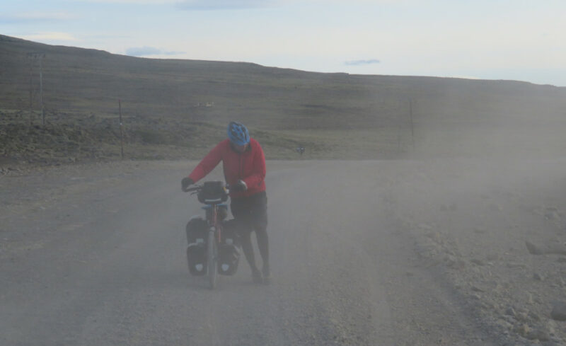The wind hadn’t improved during the night and if anything was worse. With heavy hearts we packed up and knew that the next stage involved gravel roads. At this point I wasn’t used to riding on gravel. My wheels began to skid on the stones and it was all I could do to keep the heavy bike upright. As we climbed the wind increased and for many miles I had to push the bike at a frustratingly slow pace. I didn’t think it could get any worse but it did as the wind began creating huge dust clouds that threw tiny stones into our faces and dust into our eyes. We had to stop every few steps just to look away. I began shouting into the wind and was completely and utterly exhausted. During this time very few cars passed us but those that did stopped and offered us water and bread and even a lollypop – it was so kind of them and the very fact they had cared helped me to push through.