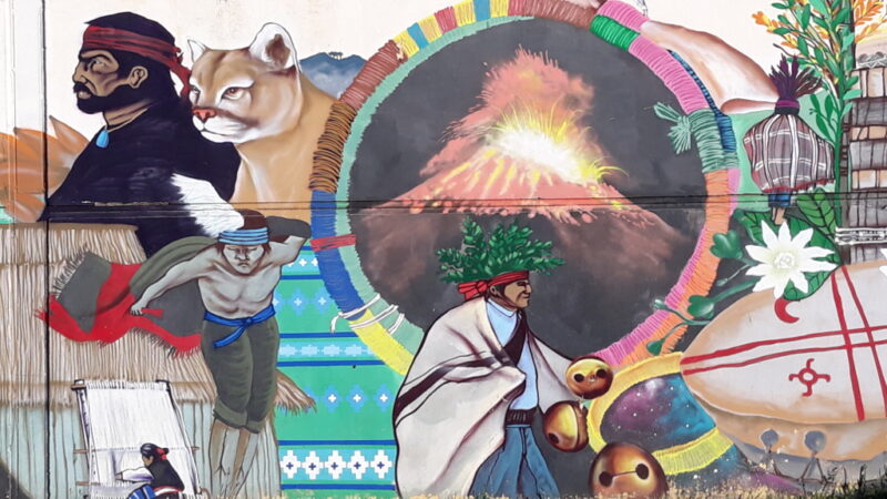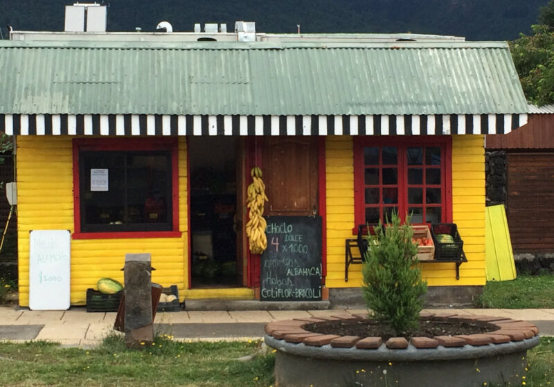 That night we took a small path off the road and ended up at a lovely little campsite. We were the only people there (quite lucky as there was only one toilet and shower!). In Chile all the campsites automatically have a table and bench, bbq area and water with every pitch. This is fantastic for Tim who hates sitting on the floor. That evening we cycled into the small local town and saw pretty buildings, shops selling just about everything and fantastic murals on the walls. I felt really content and happy and glad to be there.