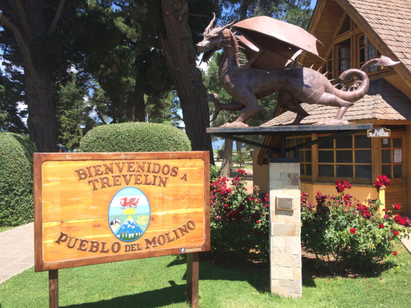 The next day brought another surprise – we knew we were heading towards a Welsh town but didn’t believe it could be totally Welsh in the middle of Argentina! Trevlin (Welsh for Mill Town) was a small town and after pitching our tent (the campsite owner was called Jones!) we decided to explore. The Tourist Office had a Welsh flag and dragon outside and inside they spoke Welsh and Spanish with a little English. They asked Tim if he spoke Welsh!