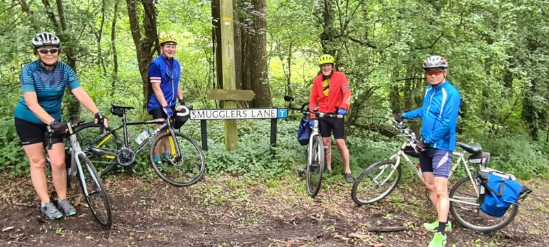 We soon came to cross over the A29 – Stane Street – the old Roman road to London, which the smugglers for obvious reasons were avoiding. Arriving at Okwood Hill we left the Cycle Way and turn northwards for our return journey, shortly to pass a long time favourite of Anerley B.C at Wallis Wood.