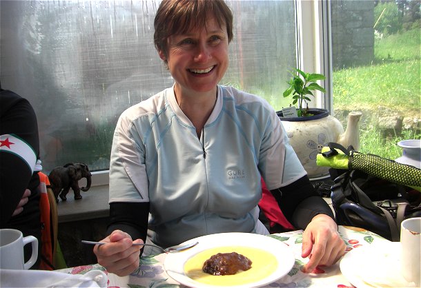 Louise, fresh from her Paris-Brest-Paris venture decided to take on the fearsome Scottish mountainous 1000km ‘Mille Alba’ four day Audax. If that was not enough she decided to ride the 400 odd miles from London to the start as part of the FNRttC LonJoG. That started Friday night 15th June from Hyde Park Corner and crossed a sunny Scottish border near Jedburgh on the following Tuesday where this picture was taken. Louise left that ride at Kinross for the Mille Alba (MA) start. Here is her report …