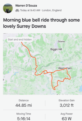 And finally our ride stats. Forty five miles and over 3,000 feet of climbing – not bad for a leisurely day’s peddle with a bit of walking included! And thanks to the many photographers who have provided an array of colour pics.