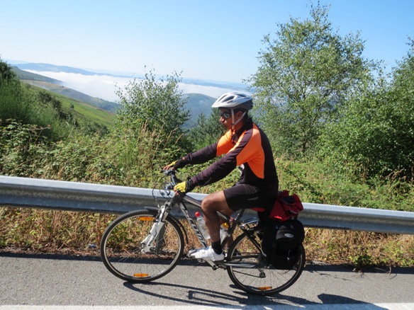 But whatever it was, the carbo loading didn’t hinder or weigh us down on the continuous climbing on our three week trek. Here Christopher powers his way up another climb, at some 3,000 feet of altitude, with a layer of white cloud nestling in a valley below. Only the scales might tell us if we over did the refuelling !