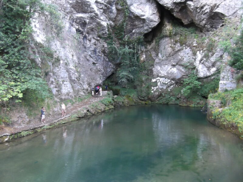As you probably now expect, it was another climb up another mountain pass. leading to the site of this first battle of reconquest. Here at Covadonga (meaning the Cave of Our Lady), is – a cave! Well, you have heard of Robert Bruce and his cave, add in the grotto at Lourdes, and then you get some idea of what this political, religious, and historical site means to the Spanish.