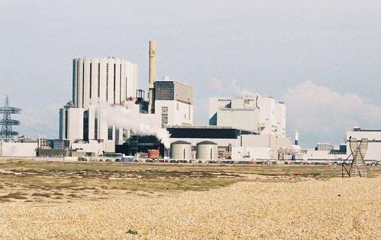 But looking across fields and into the distance, we could see the blue waters of the English Channel and the coastline sweeping out to a headland, with upon it’s point, a huge complex of buildings. This could only be Dungeness Nuclear Power Station.