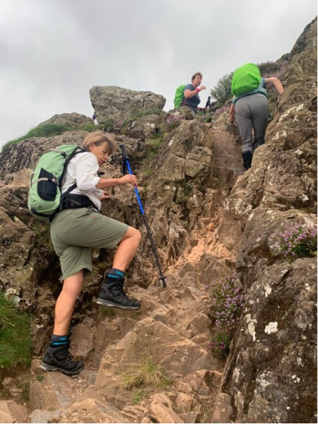 As you may already know, the first part of the route actually heads northwards along the West Coast, with views of Scotland ahead and the Isle of Man to our west. Stunning scenery. The next few days through the Lake District were hard work. The paths were, in parts, very uneven or non-existent and entailed a certain amount of clambering over rocks. We hadn’t expected that! Also, it was mentally tiring, as you had to concentrate on every single step taken. To admire the stunning scenery you had to physically stop walking and look around.