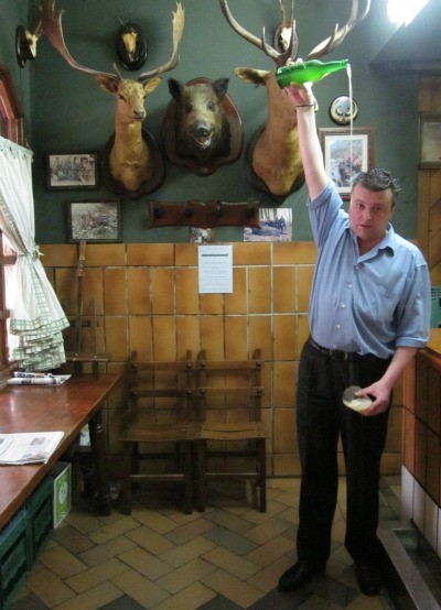 The way in which cider is poured in Asturias is a true art form. To pour cider the traditional Asturian way, hold the bottle high above your head with one hand and the glass in your other hand near your knees – try to get the maximum distance between the two. Then start pouring! Like this!