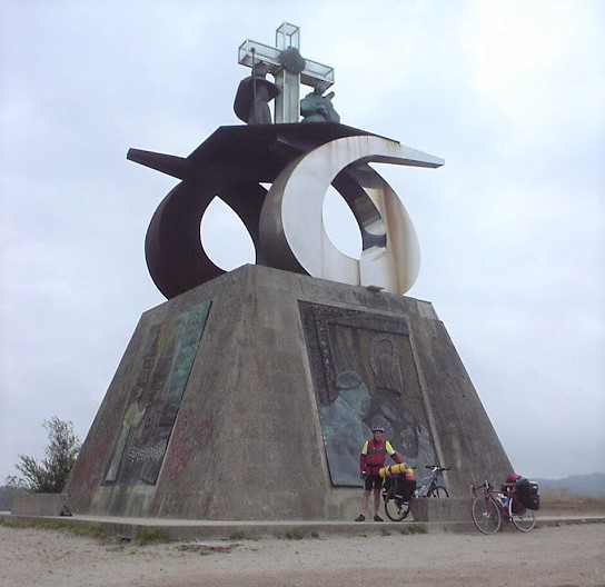 Shortly afterwards, we had our first religious experience. The massive monument on the Monte do Gozo. This is a hill top of historic significance over looking Santiago. The monument was built to commemorate the visit by the recently deceased, Polish Pope John Paul. Naturally it had a special significance to Ewa and Irena, both being Polish Catholics.