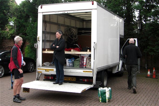 By the time we got to West Auckland we were very happy but very tired with the prospect of an even longer 10 mile climb up to Castleside. Would we have done it without our support vehicle? This not only was ferrying our luggage, dealing with ‘technicals’, but was dispensing bananas, tea and good cheer. You may notice the lady on the rear platform bears an uncanny resemblence to my better half …