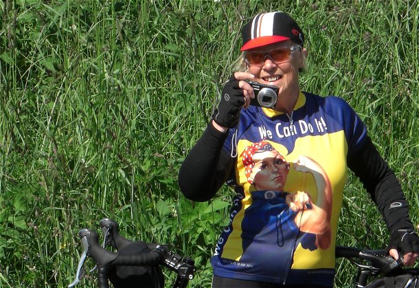The weather was fine and improving. We had a delayed start as the campers got lost and had to sprint north to get the lunch stop before they closed. My thighs were killing me and I was having difficulty keeping pace. Then salvation, ‘Big Michael’ passed me and got on his tail. I was sucked along for 10 or more miles and then catapulted into the lead of our sub-pelaton.