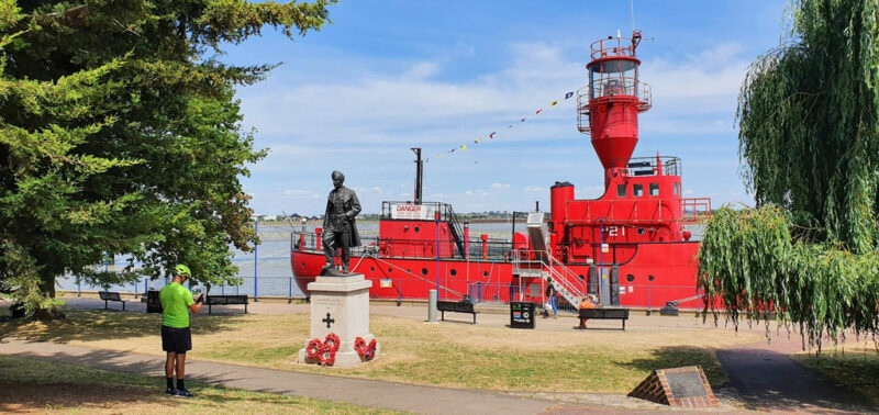 After Julie impressed us with a rapid puncture fix under the blazing sun, we moved to the Medway Towns of Strood, Rochester and Gillingham. Still no hills but plenty of other historical interest and we didn’t even touch the Historic Dockyard at Chatham!