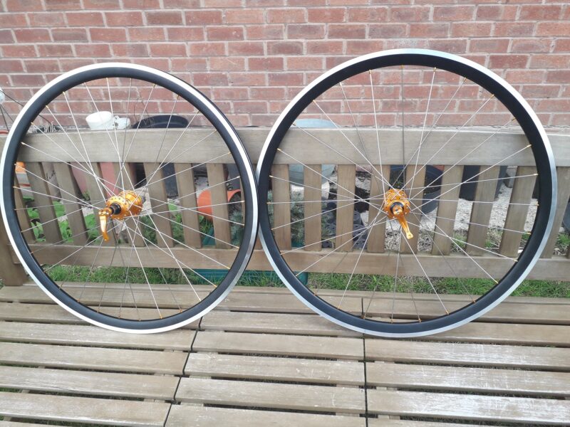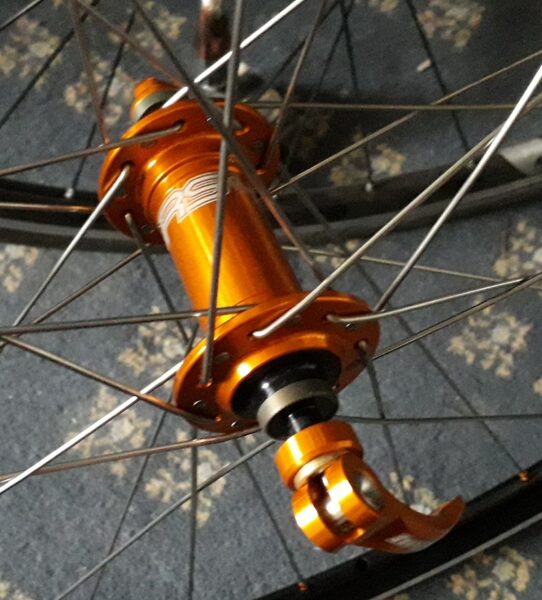 It was at this point i decided to get custom built wheels to match. As my Moulton has hand built wheels by SBC cycles I gave them a ring. Can you make me a pair of wheels with Hope RS4 Hubs with 32 spokes rear & 28 spokes at the front with orange nipples & black rims. Yes they said be ready in 4 weeks.
