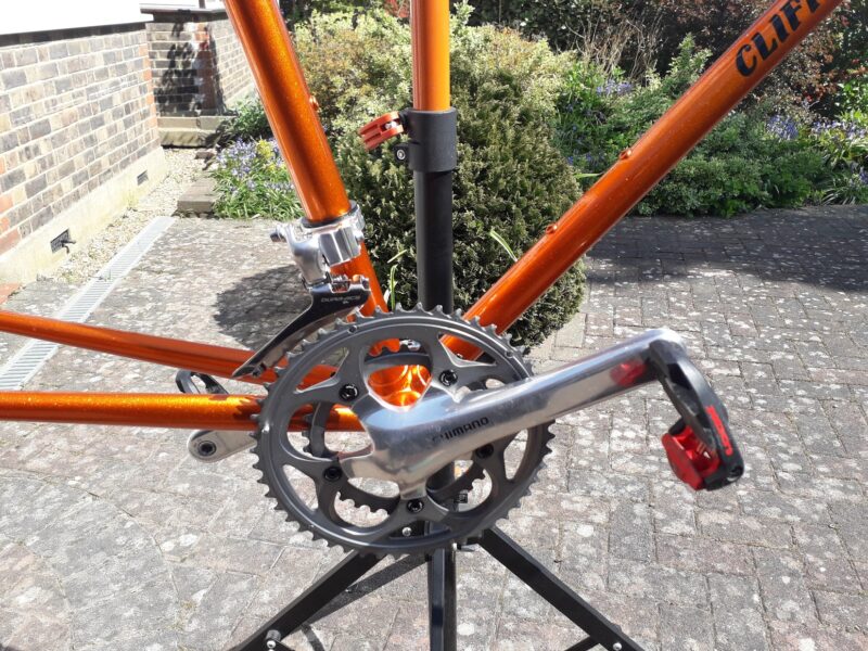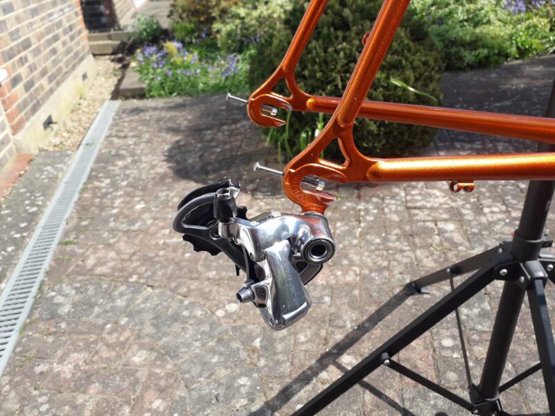 I took my Dura Ace parts off to Wallington Cycles where Duncan kindly let me use the cleaning tank. At the same time Tony Mallender fitted it to the frame which was quite difficult.
