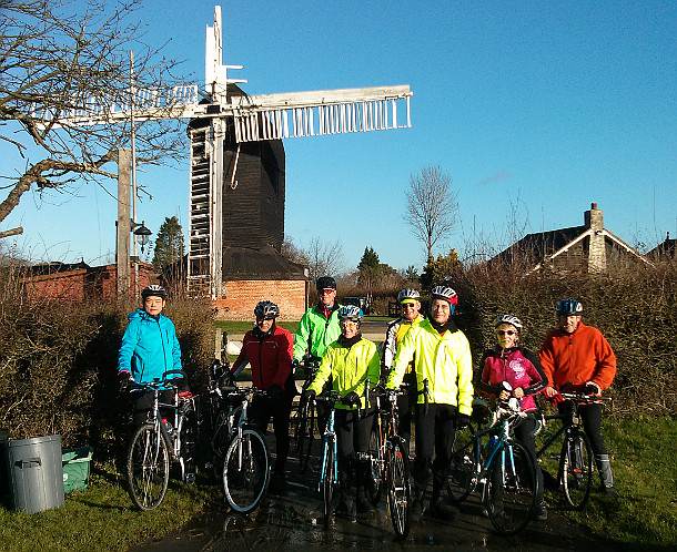 Not the standard Tuesday ride but fortified with some Sunday Riders for the New Year Bank Holiday. A glorious, if cool, bright blue sky and a strangely romantically low lit sun illuminated Purley Tescos. Nine of us set off southward towards Farthing Down. Thence to Bletchingley and this shot as we hung the left at a depleted Outwood Post Mill …