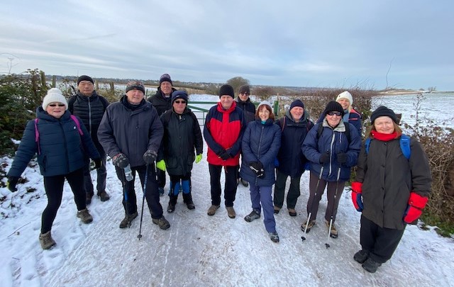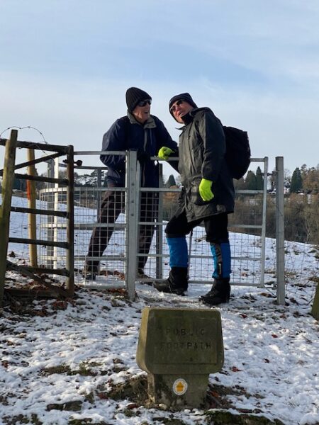 I think we were all very surprised, when coming up the icy track were 5 cyclists (obviously on Gravel bikes!) who appeared to have no problem staying upright, when we on foot were slipping and sliding – except those wiser ones amongst us, making use of hiking poles!