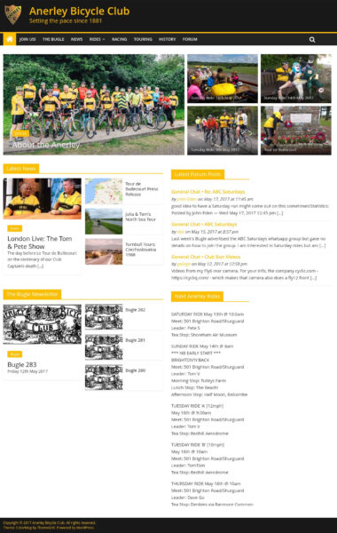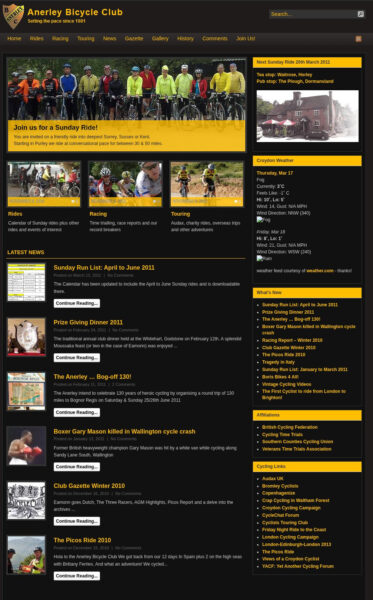 Fast forward to 2010 when the first WordPress website was launched. It featured the (then) Anerley colours of black and gold and a phpBB forum.