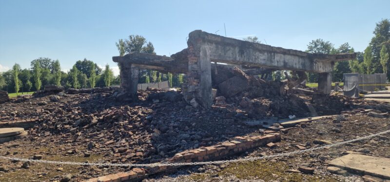 After a couple of hours in Auschwitz 1 we got on a bus to Auschwitz Birkenau or Aushchwitz 2. Here is where you find see the scale of the industrialised extermination that was going on. Starting from the train line it was turn left to go to the work camp or turn right to go straight to a gas chamber. The only part of the wooden huts are the chimneys – after the war, any timber was taken by locals for firewood or reused elsewhere.