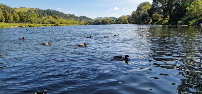 After leaving Stary SÄ…cz we were soon back on the River Dunajec but now enjoying a day of glorious sunshine. The scenery remained beautiful for a while before we ended up cycling alongside a very busy road. We all tried the portaloo at the side of the road and it was pretty eye waterinh in terms of sights and smells. Sadly, we had no option to avoid it for 5 miles before our turning to a local road. We negotiated some the hills and found a Zapka mini market at the top of a remote hill where we were pleased to get a bit of lunch.