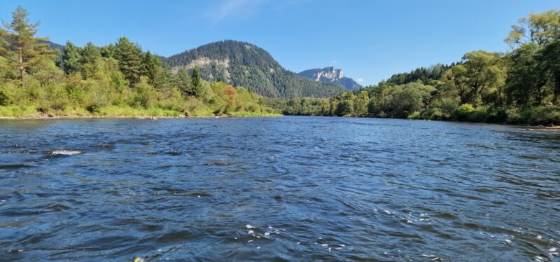 Warning change of weather! The day started with us cycling through the Dunajec Gorge along the same 14 miles we had rafted the the day before. However, it was raining heavily throughout! After some early photos at the two dams at the end of the lake, we continued along the Velo Czorsztyn. This is a good tarmac cycling route through forest alongside the river.