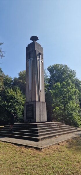 Diverting from the planned route we cycled across some fields and into a forest before making way into town. As we made our way through the woods we saw this huge statue. We had stumbled across the Buczyna Forest in Zbylitowska Góra near Tarnów – a place where, during World War II, the German occupiers murdered about 10,000 people of Jewish, Polish and Roma nationality. Their bodies are placed in mass graves, designated in the post-war times.