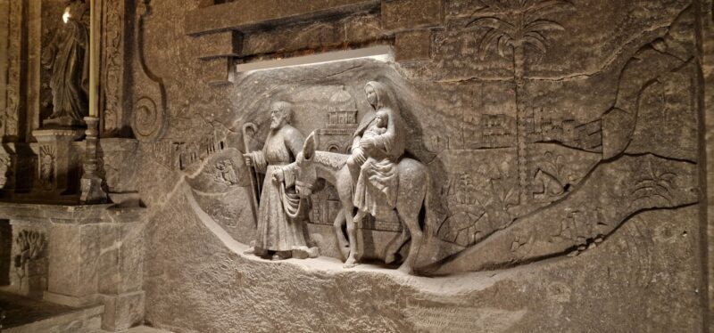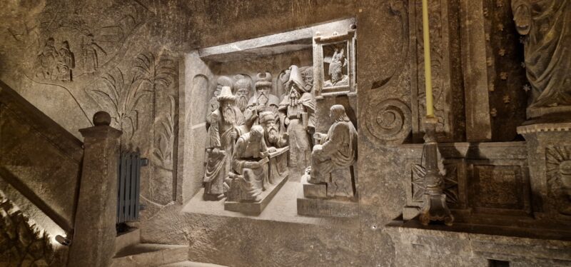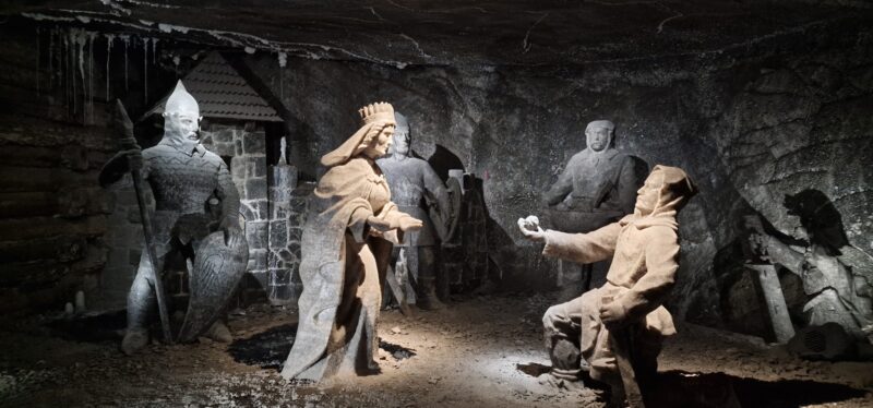 As to the origins of salt mining in Poland? That goes back to the Saint Kinga who threw away her engagement ring which was found some time later in a salt mine which she asked to be dug. Well that is one story of course – even our guide seemed sceptical about it. The other is that people just dug for it once the supplies at the surface were used up.