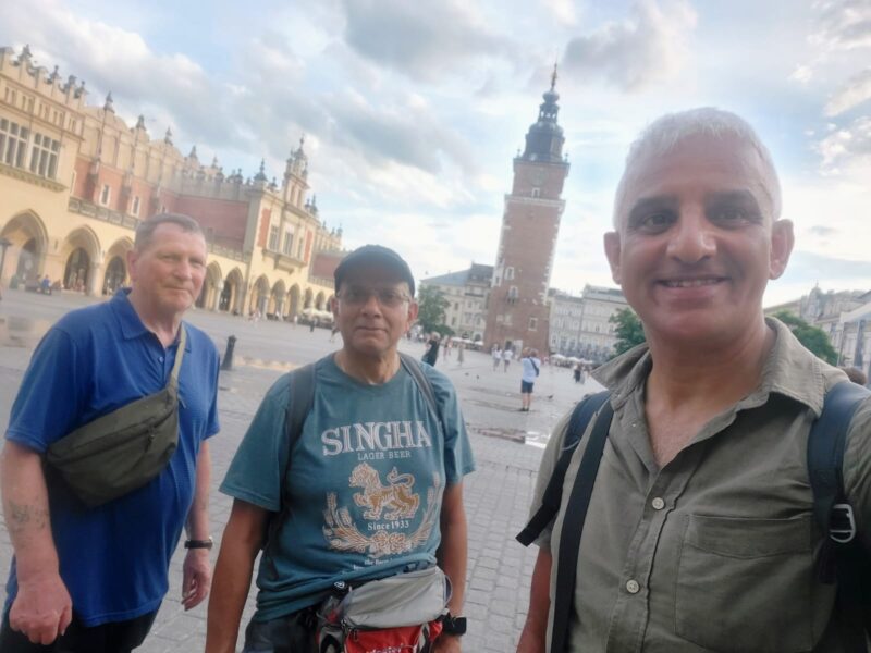 Prompted by 85 year old Des, I thought an adventure in Poland would be good – promising miles of easy cycling, sunshine and an interesting history. Choosing TomTom and Asif as companions (we had many miles of cycling and an easy friendship between us) planning started in earnest. Krakow was the start and end point of an anticlockwise circuit with the River Vistula taking us west and southwards and the River Dunajec bringing us back across the border from Slovakia. Bearing in mind Des’ age, Asif’s diabetes, TomTom’s lung issues and my heart problems the route was expected to be gentle (well I didn’t want to frighten anyone by mentioning a few days of 50 miles hilly sections).