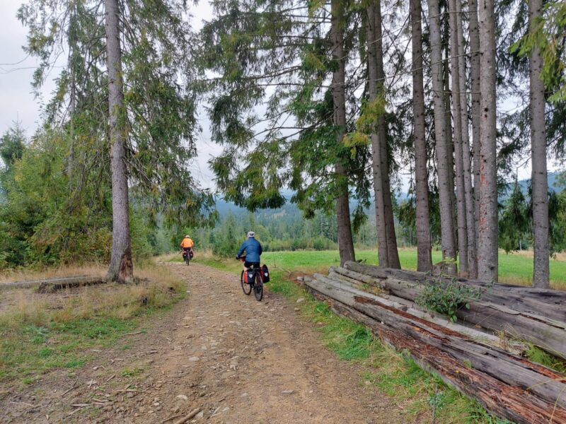 As expected, this turned out to be the toughest day of our trip. A lot of climbing to get to Zakopane but from there we would be following the River Dunajec downstream. Before all that we stopped at the local Lidl for our daily top up of food supplies. Here I spent 30 minutes wresting with the chain before finally achieving some success with the help of TomTom holding onto my chaintool with a set of pliers while I eased the rivet.