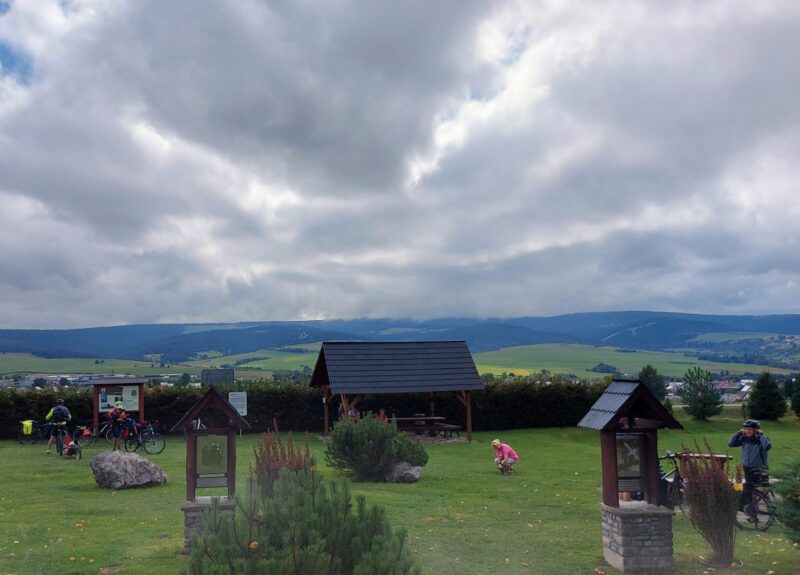 It’s a good idea to have a day off the bike at the half way stage and our chosen day comprised a 10 mile hike in the Tatra Mountains. The entrance to the park was a very short distance from our apartment through luck more than careful planning on my part. However, during the previous evening, I received an Emergency SMS message from the Polish Mountain service warning of heavy thunder storms and to avoid the mountains. We contacted Ewa, originally from Poland and club member who happened to be in Poland at the time. Ewa, somewhat unhelpfully said,”They send these messages a lot and they aren’t always right. It’s up to you. you can always buy some second hand mountain clothes in townand throw them away afterwards.”