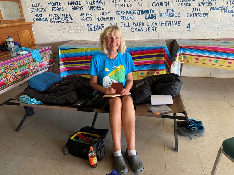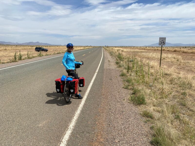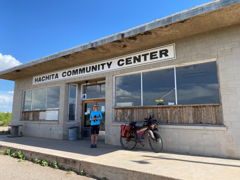 Some cyclists were preparing to cycle to Antelope Wells for the start of the race (you can start from either end of the route), others were finishing the next day having “toured” down from Canada and others, like us, were newbies just setting off. We swapped stories and compared each other’s set up and kit. It was clear that we were carrying more than most, were the only ones to have panniers and not to have 29-inch wheels with at least front suspension. Everyone was younger than us although there were a couple of guys in their 50s. Sally was the only woman. We felt a bit like frauds but at least we had survived Day 1.