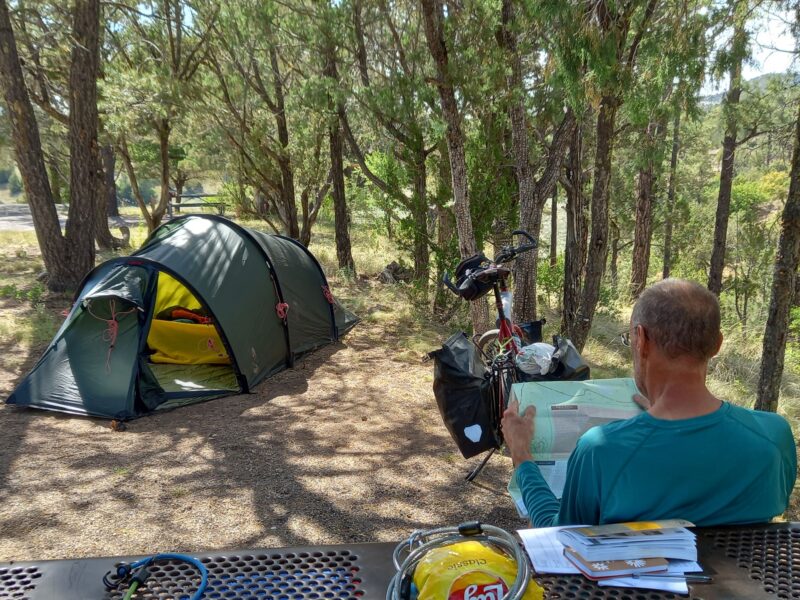The GDMBR route through the State is around 700 miles and we planned to take 24 days to reach Colorado allowing for some contingency and rest days. This meant we should leave New Mexico before the rainy period in July/August and also keep us on track for leaving the United States before our visa expired (90 days). It climbs from around 4,500ft to 6,000 – 7,000ft and then to over 10,000 feet.