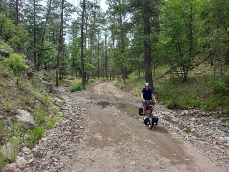 After Grants we climbed back up to 9,200 ft through Red Woods and then Aspen Forest and started to feel the altitude. Every now and then we would suddenly find we would have to pant and gulp in some extra air.