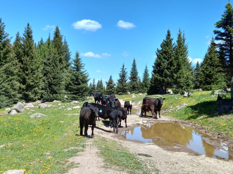 Over the next few days, we travelled through forest on the higher ground and then through barren ranch land at the lower elevations. There were a lot of Black Cattle that I had been concerned about before I left home but turned out to be incredibly docile. We also saw Elk, Foxes and Hares and clouds of grasshoppers.