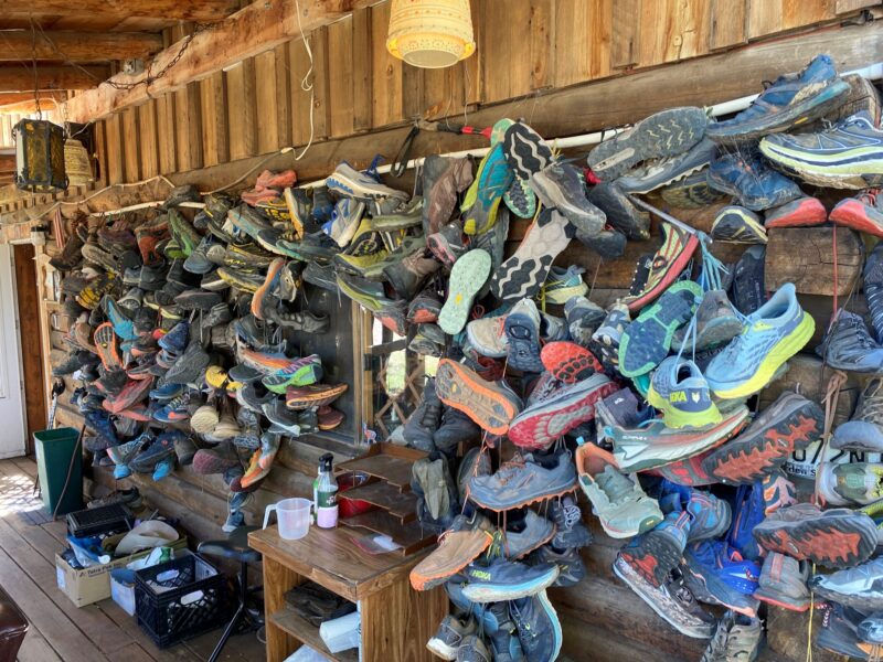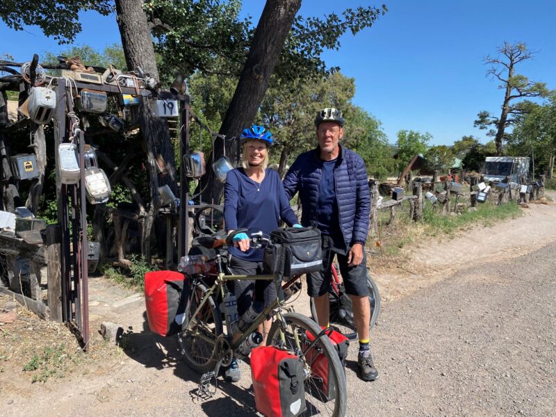 A few more days down the track, we arrived at one of the iconic stops on the route; the Toaster House in Pie Town. The Toaster House is a popular stopping point for cyclists and hikers doing the Great Divide. It is called the Toaster House as all along the boundary fence and around the gateway arch are old toasters. The Hostel is used as a re-supply point for hikers that send new walking shoes and discard their old ones, hanging them on the veranda; there must be hundreds.