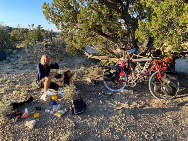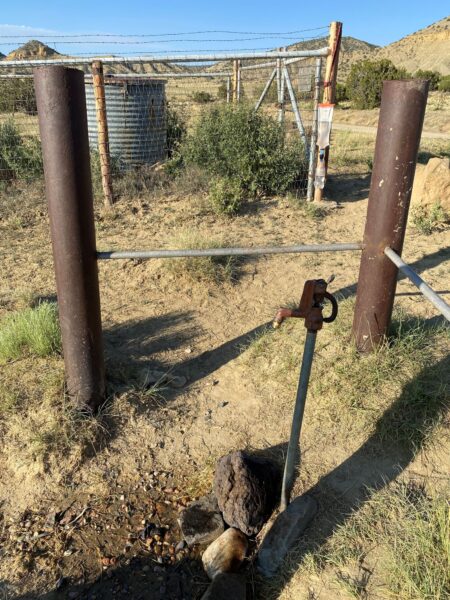 We met our first cowboy, a tall man wearing a Stetson hat, at the Germino Guest Ranch. We were hoping we could stay the night. The clue is in the name of the ranch; right?… Nope! At first, he was a bit grumpy and asked us what we wanted as he pulled up in a massive pick-up truck at the entrance to his ranch. He informed us that the ranch was only for guests on horse riding packages and was obviously a bit irritated by being bothered by cyclists. Sally complemented him on his beautiful horses and he softened a little and let us re-fill our water bottles from a ground water pipe. He was proud of how pure the water was and explained that his grandfather had established the ranch and that he was self-reliant – water/power/security (gun). As we left to pitch our tent on nearby public land he went to his truck and returned with an energy drink and bar for each of us.
