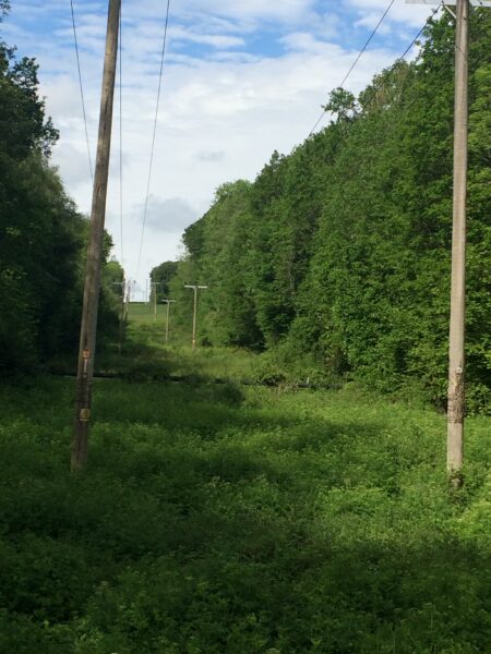 I jumped on my computer and fired up Kamoot so that I could zoom right in on the Open Street Map. That allowed me to trace the river all the way back to just north of Toys Hill. Two minor streams drain off from Butcher’s Wood and Miswell Wood and follow some powerlines before crossing the B2028. This would be as near as we could get to the source on a public right of way.